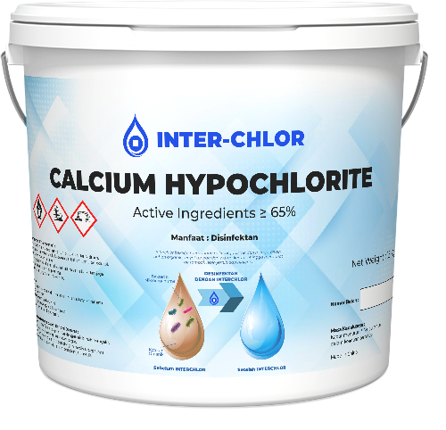Interchlor adalah Calcium Hypochlorite dengan kadar klorin aktif tinggi (±65%), digunakan untuk disinfeksi air, air kolam renang, air limbah, serta berbagai aplikasi sanitasi industri dan rumah tangga.